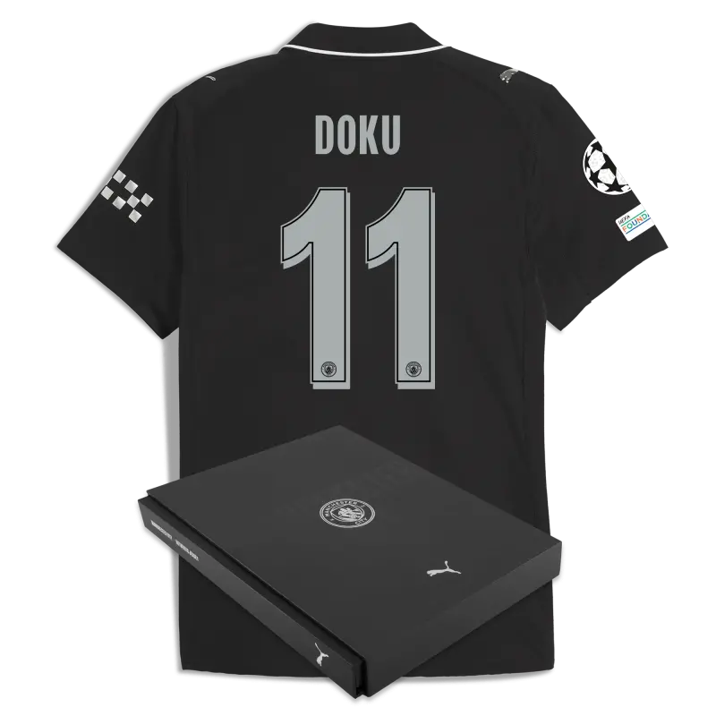 Manchester City Man City Champions League Away Authentic Jersey 2025/26 With DOKU 11 Printing in Gift Box