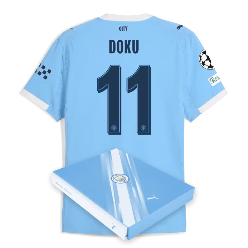 Manchester City Man City Champions League Home Authentic Jersey 2025/26 With DOKU 11 Printing in Gift Box