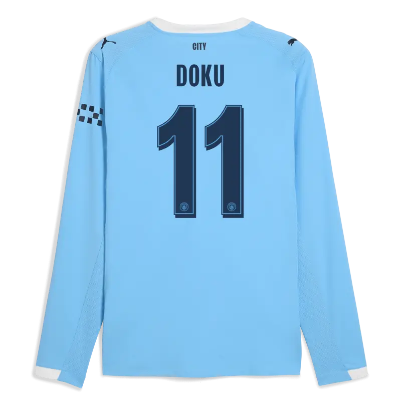 Manchester City Premier League Home Authentic Jersey 2025/26 Long Sleeve With DOKU 11 Printing