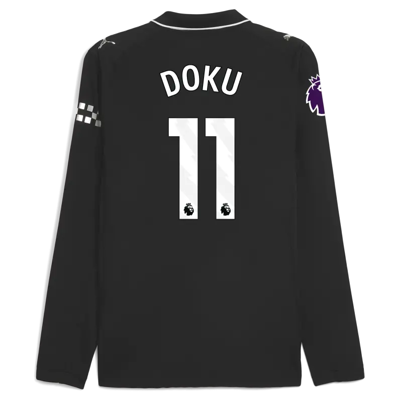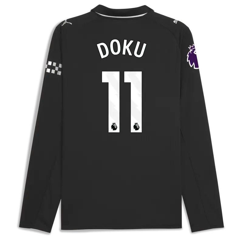 Manchester City Premier League Away Authentic Jersey 2025/26 Long Sleeve With DOKU 11 Printing
