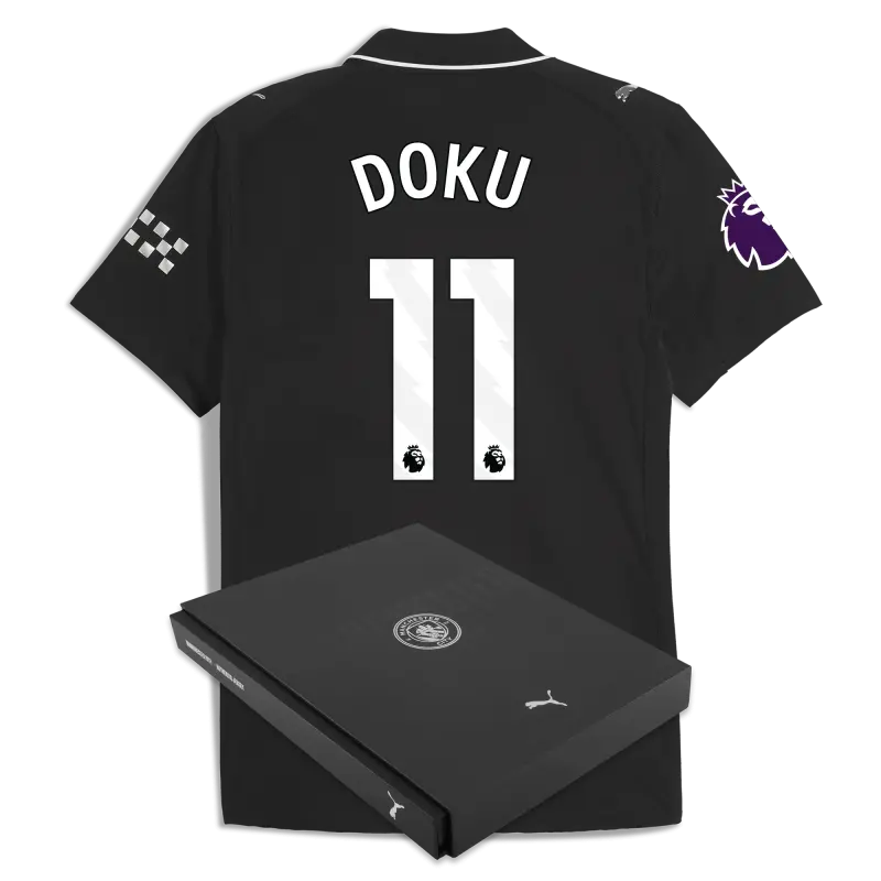 Manchester City Premier League Away Authentic Jersey 2025/26 With DOKU 11 Printing in Gift Box