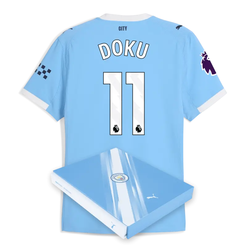 Manchester City Premier League Home Authentic Jersey 2025/26 With DOKU 11 Printing in Gift Box