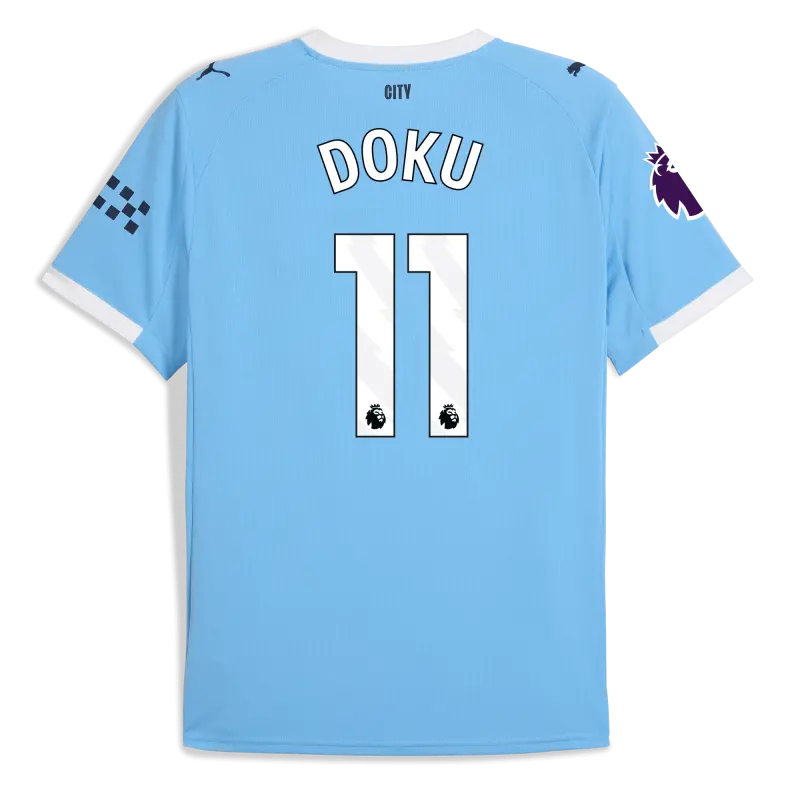 Manchester City Premier League Home Jersey 2025/26 With DOKU 11 Printing