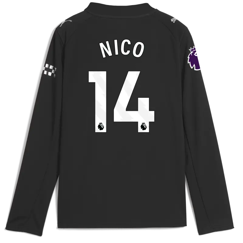 Kids’ Manchester City Premier League Away Jersey 2025/26 Long Sleeve With NICO 14 Printing