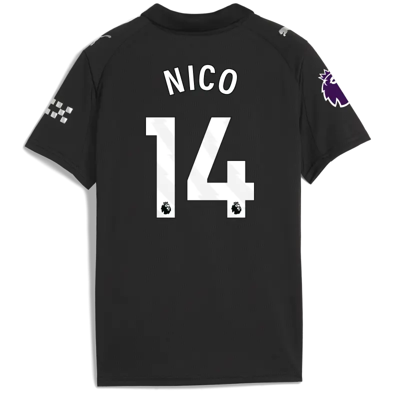 Kids’ Manchester City Premier League Away Jersey 2025/26 With NICO 14 Printing