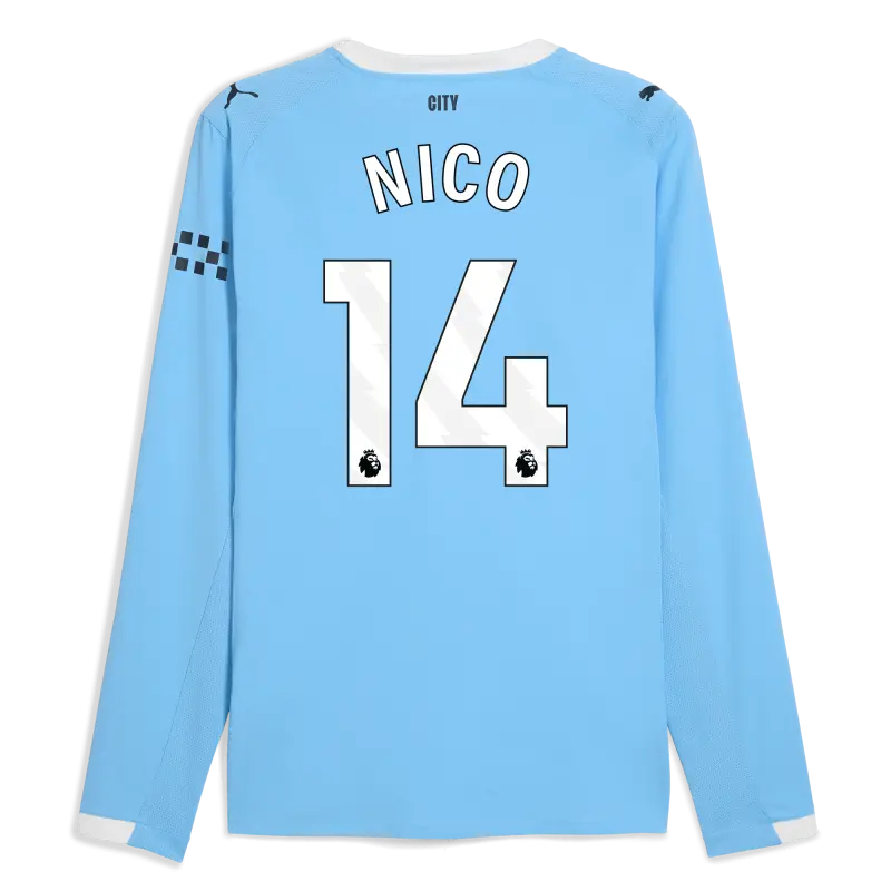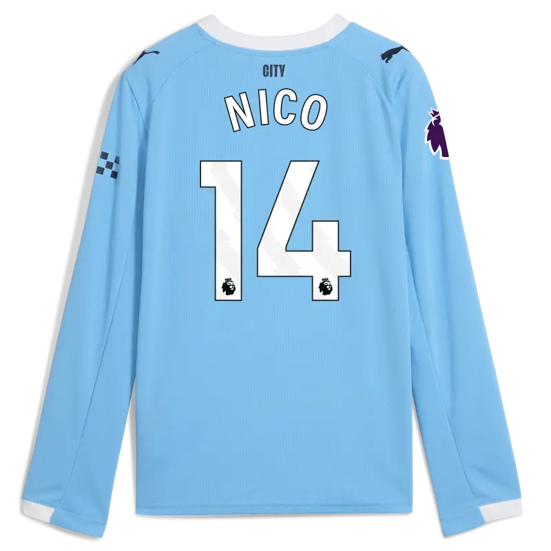 Manchester City Home Authentic Jersey 2025/26 Long Sleeve With NICO 14 Printing
