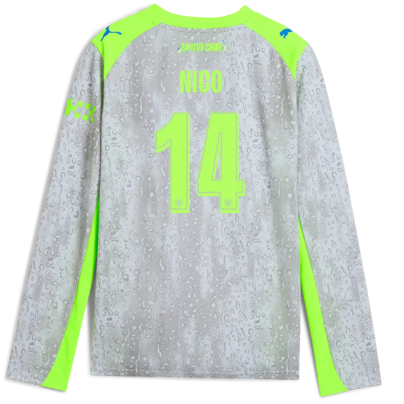 Kids’ Manchester City Third Jersey 2025/26 Long Sleeve With NICO 14 Printing