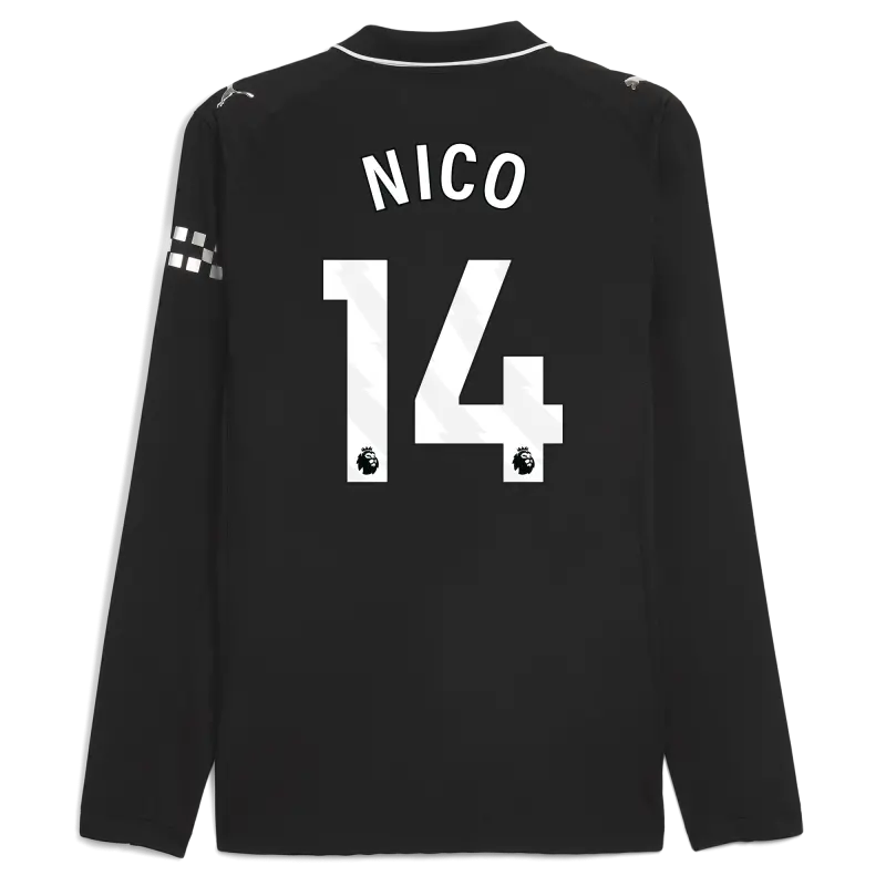Manchester City Away Authentic Jersey 2025/26 Long Sleeve With NICO 14 Printing