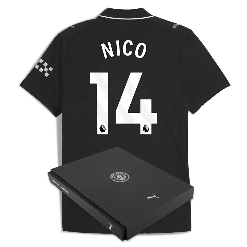 Manchester City Away Authentic Jersey 2025/26 With NICO 14 Printing in Gift Box