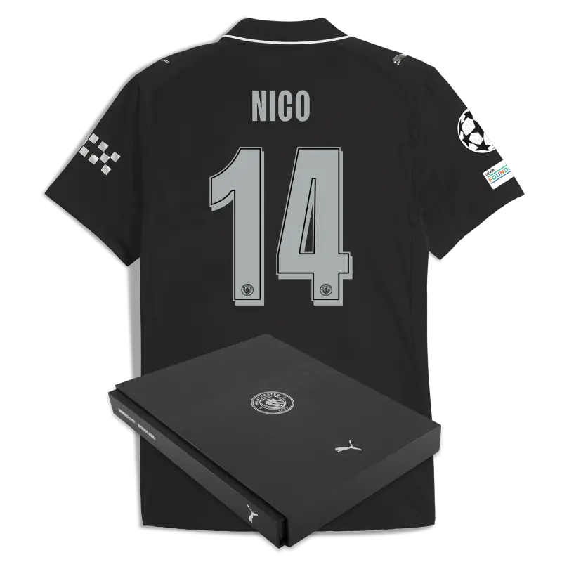 Manchester City Man City Champions League Away Authentic Jersey 2025/26 With NICO 14 Printing in Gift Box