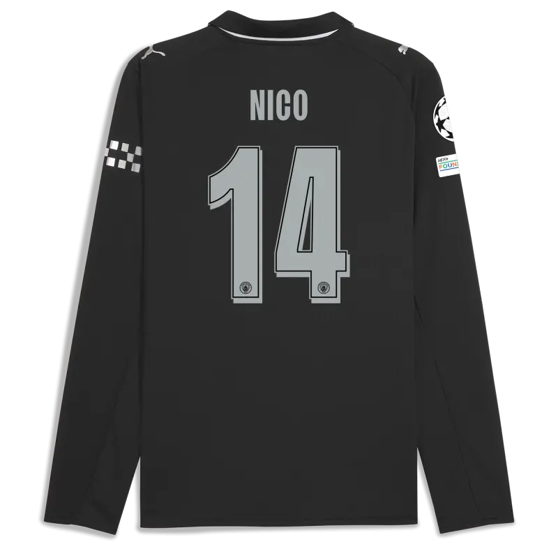 Manchester City Man City Champions League Away Jersey 2025/26 Long Sleeve With NICO 14 Printing
