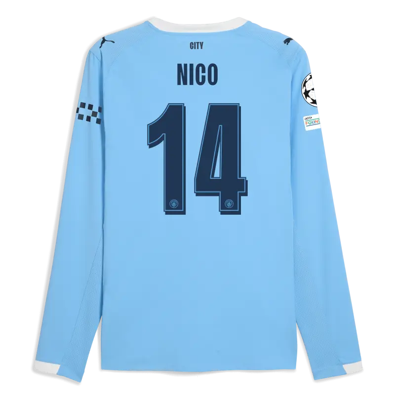 Manchester City Man City Champions League Home Authentic Jersey 2025/26 Long Sleeve With NICO 14 Printing