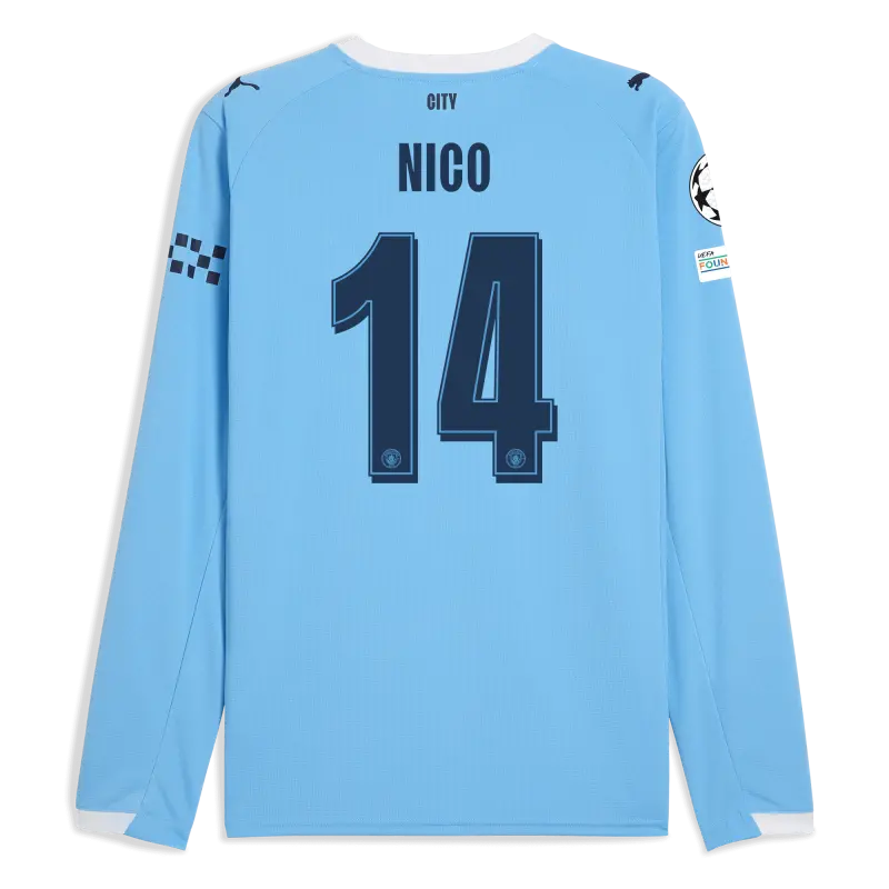 Manchester City Man City Champions League Home Jersey 2025/26 Long Sleeve With NICO 14 Printing