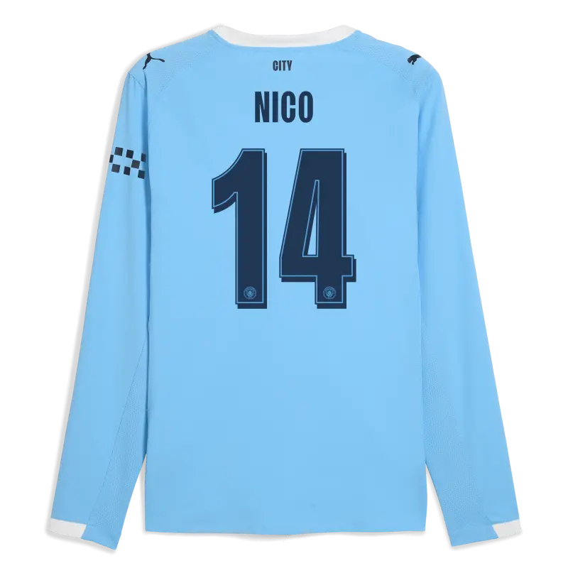 Manchester City Man City Home Authentic Jersey 2025/26 Long Sleeve With NICO 14 Printing