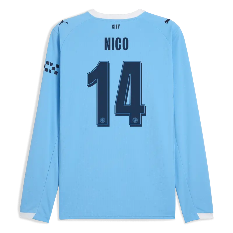 Manchester City Man City Home Jersey 2025/26 Long Sleeve With NICO 14 Printing