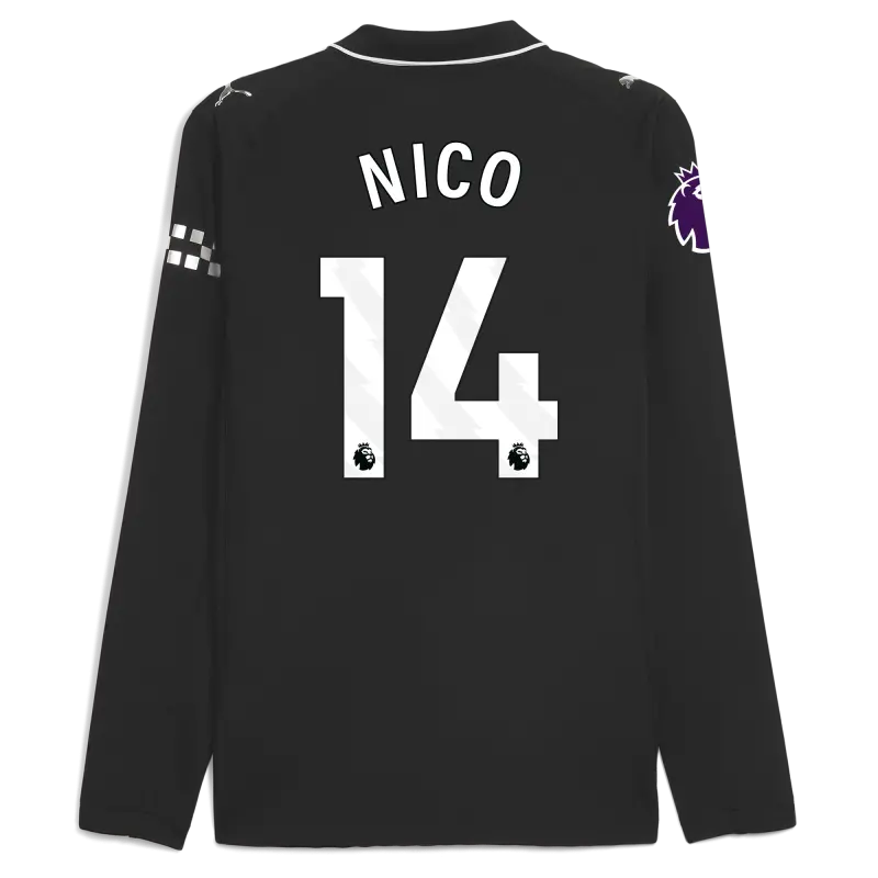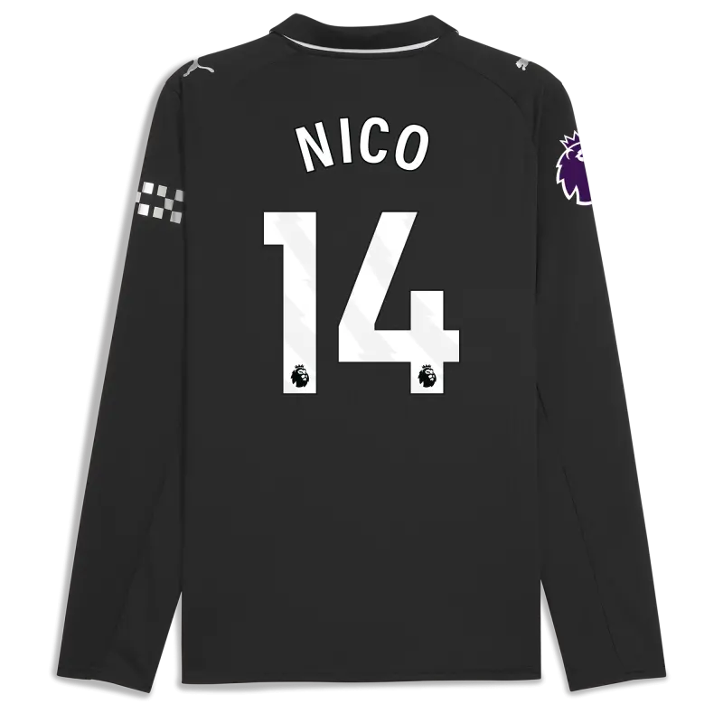 Manchester City Premier League Away Jersey 2025/26 Long Sleeve With NICO 14 Printing