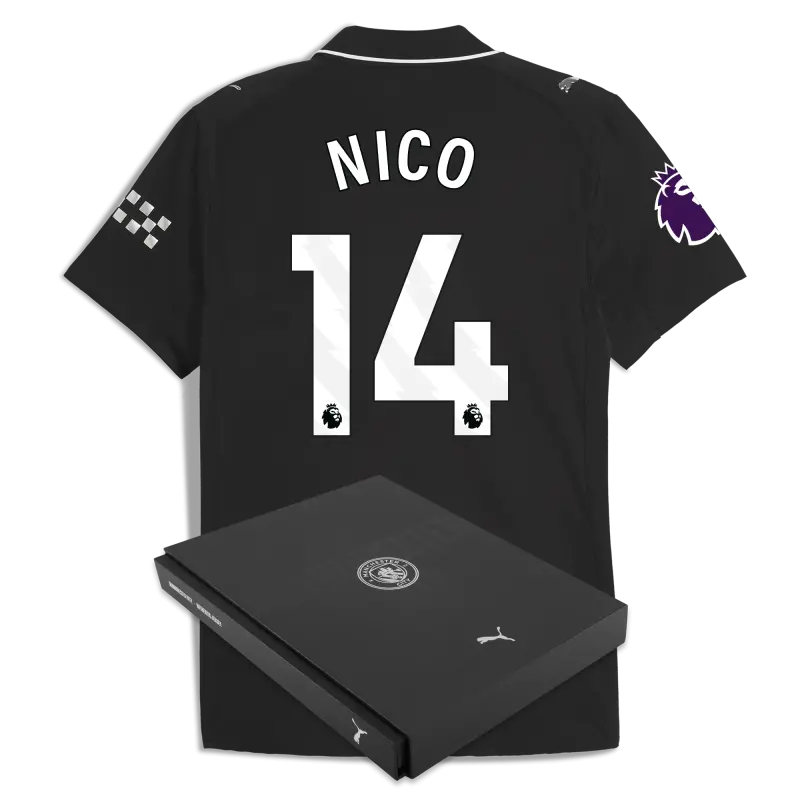 Manchester City Premier League Away Authentic Jersey 2025/26 With NICO 14 Printing in Gift Box