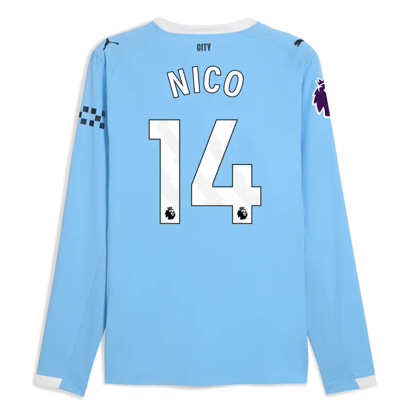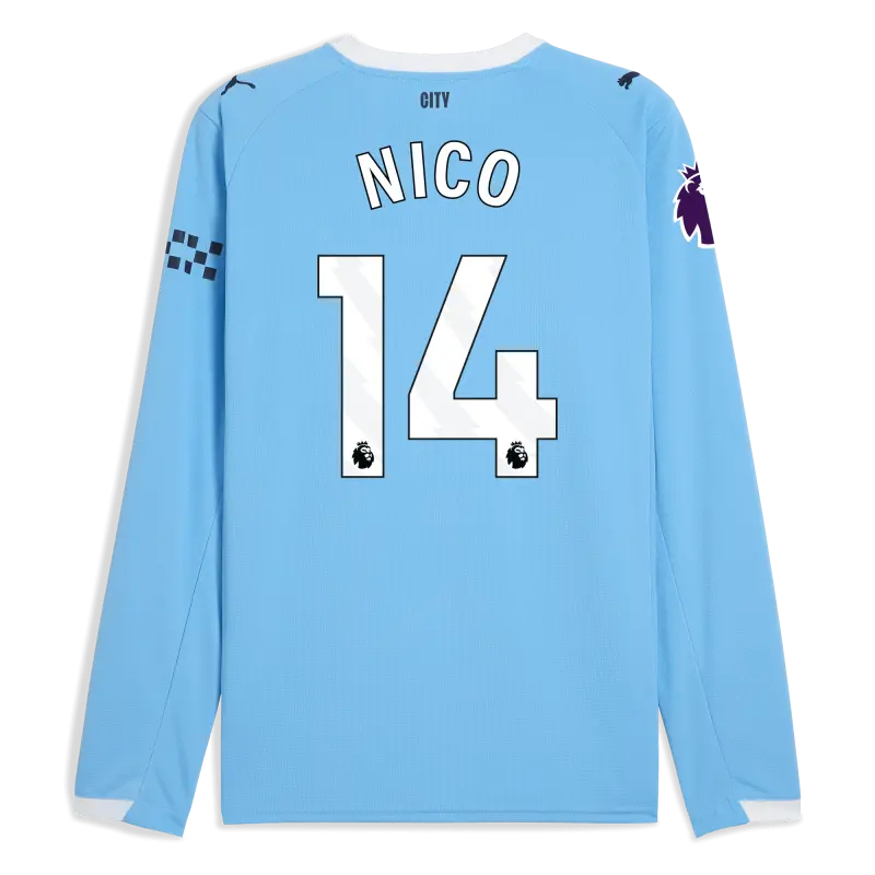 Manchester City Premier League Home Jersey 2025/26 Long Sleeve With NICO 14 Printing