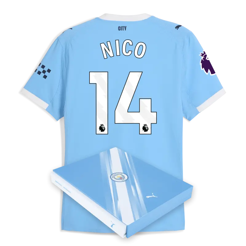 Manchester City Premier League Home Authentic Jersey 2025/26 With NICO 14 Printing in Gift Box