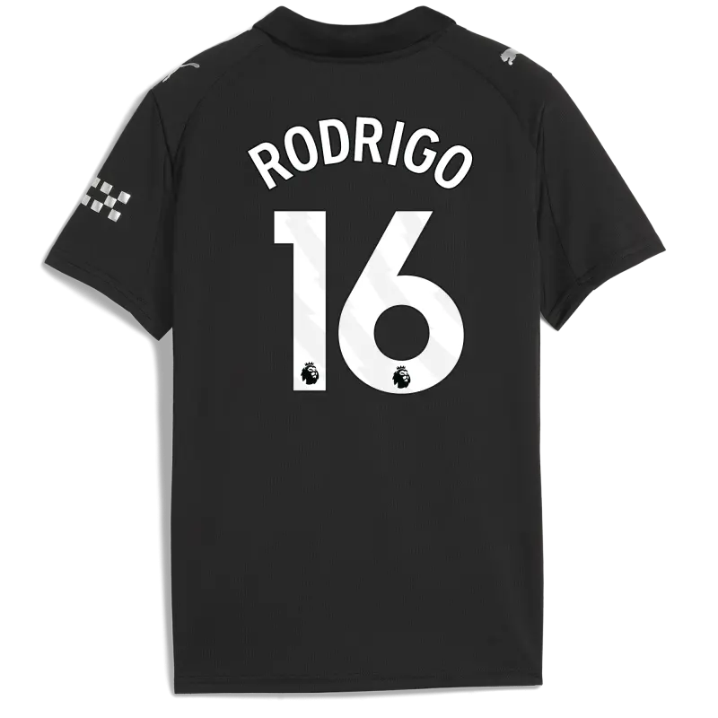 Kids’ Manchester City Away Jersey 2025/26 With RODRIGO 16 Printing