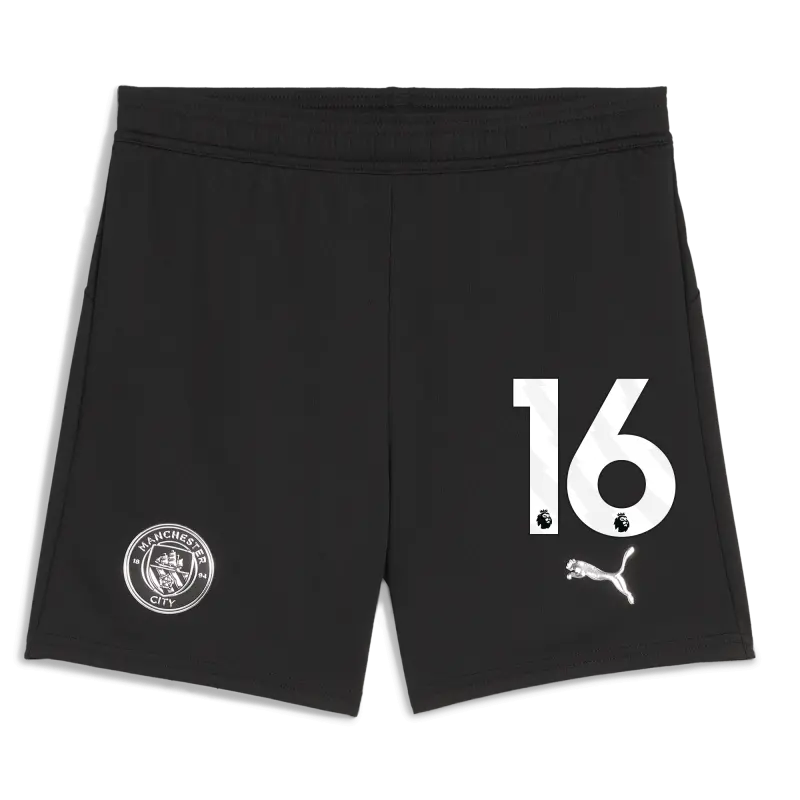 Kids’ Manchester City Football Shorts Black 2025/26 With #16