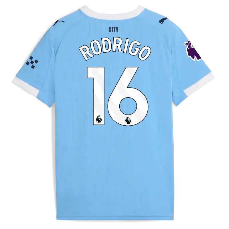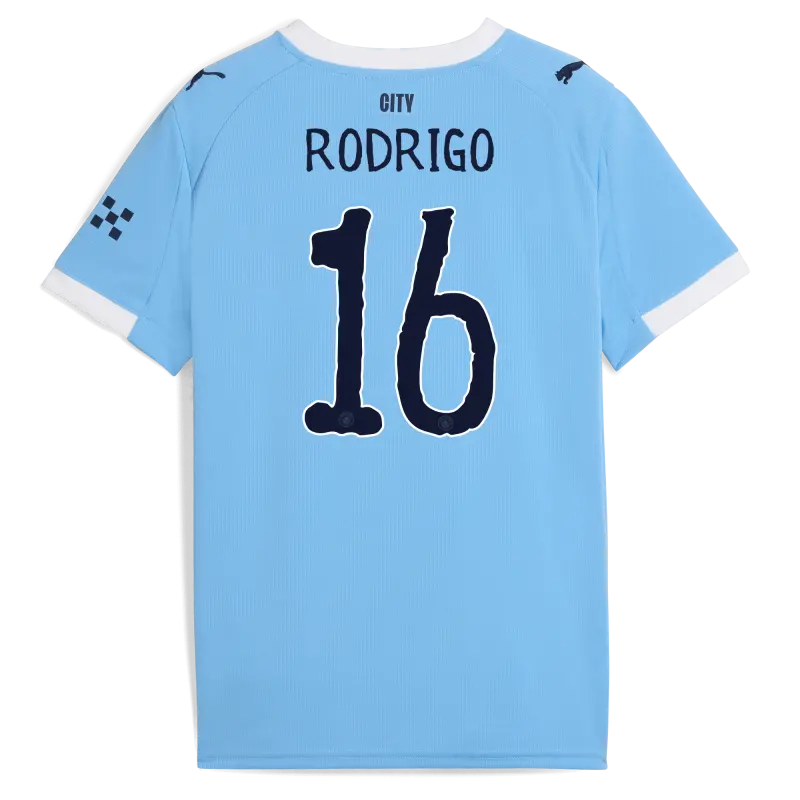 Kids’ Manchester City Home Jersey 2025/26 With RODRIGO 16 Printing