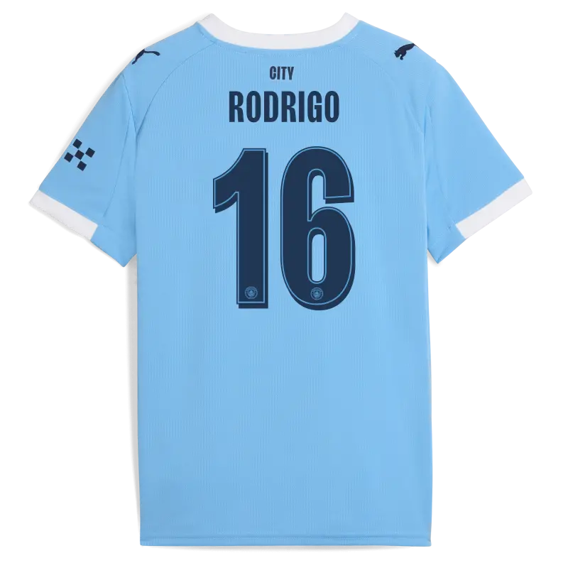 Kids’ Manchester City Man City Home Jersey 2025/26 With RODRIGO 16 Printing