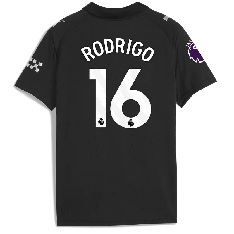 Kids’ Manchester City Premier League Away Jersey 2025/26 With RODRIGO 16 Printing