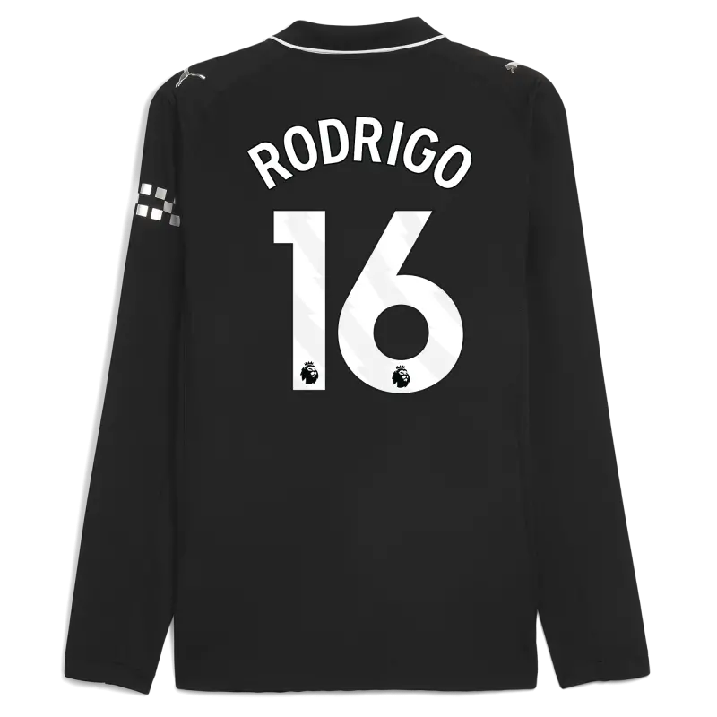 Manchester City Away Authentic Jersey 2025/26 Long Sleeve With RODRIGO 16 Printing