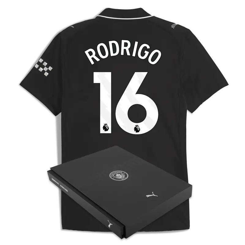 Manchester City Away Authentic Jersey 2025/26 With RODRIGO 16 Printing in Gift Box