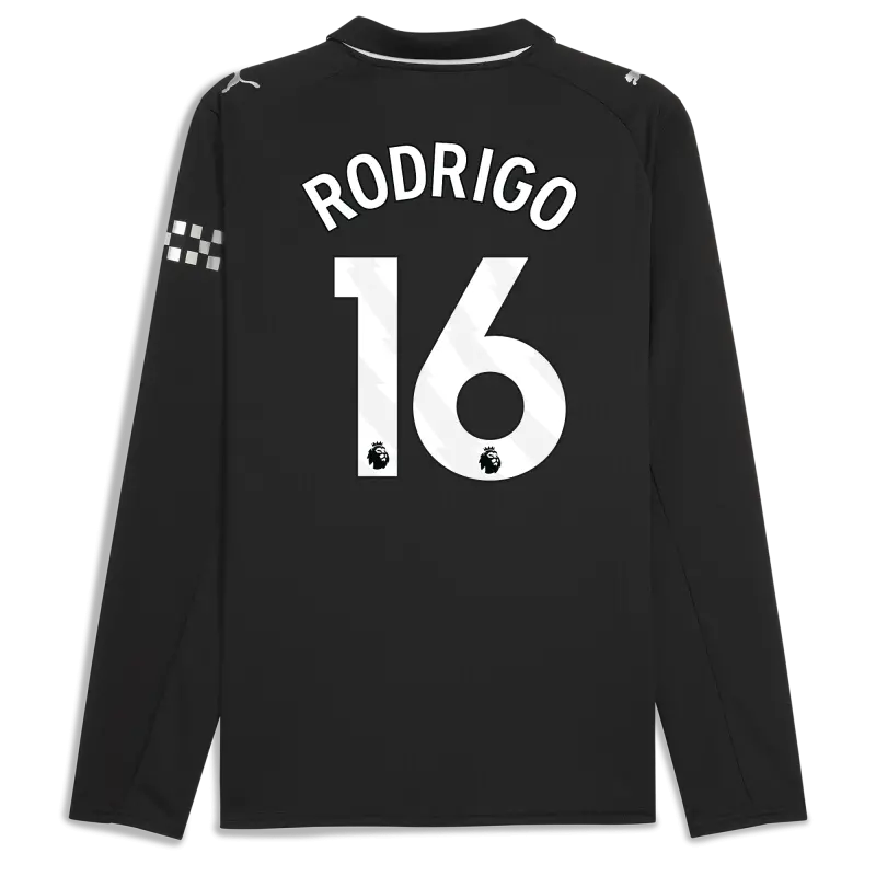 Manchester City Away Jersey 2025/26 Long Sleeve With RODRIGO 16 Printing