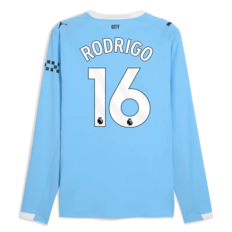 Manchester City Home Authentic Jersey 2025/26 Long Sleeve With RODRIGO 16 Printing