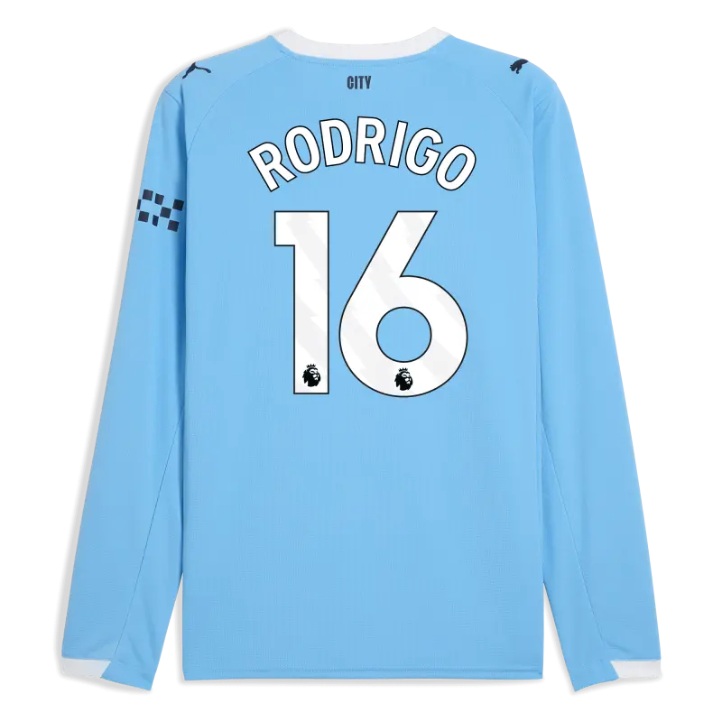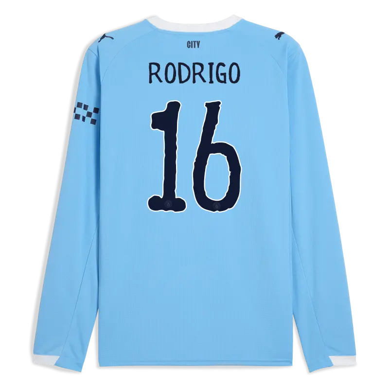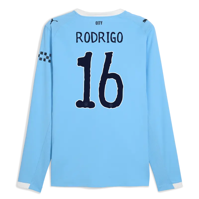 Manchester City Home Jersey 2025/26 Long Sleeve With RODRIGO 16 Printing