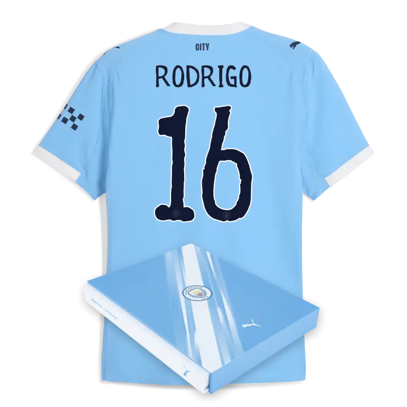Manchester City Home Authentic Jersey 2025/26 With RODRIGO 16 Printing in Gift Box