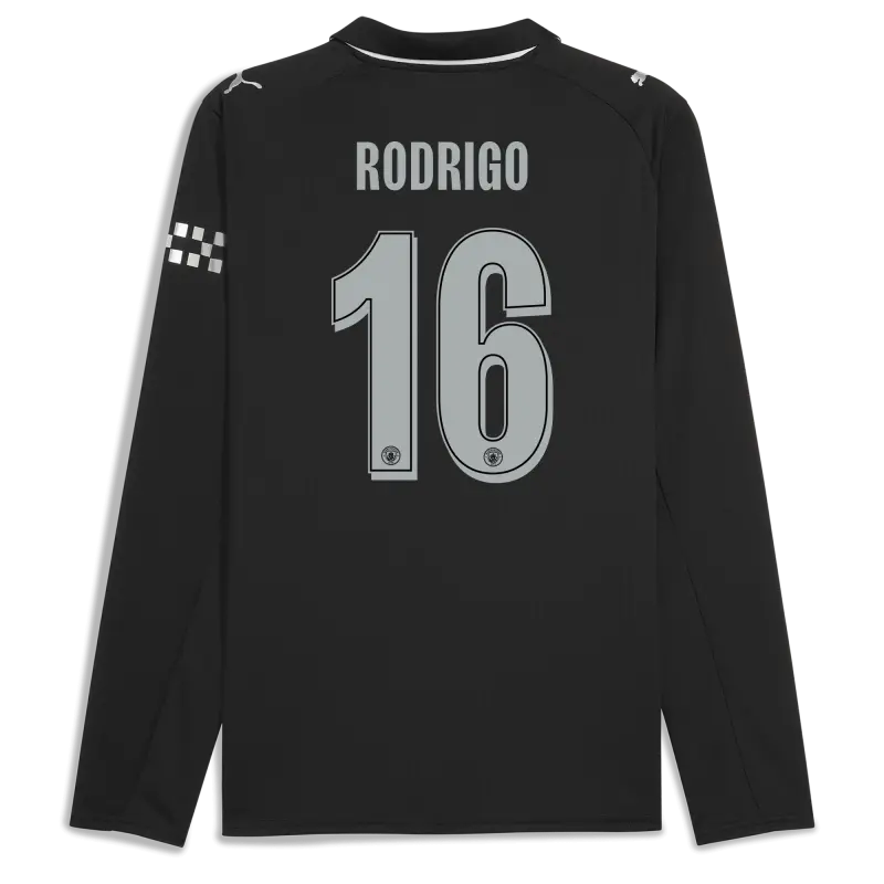 Manchester City Man City Away Jersey 2025/26 Long Sleeve With RODRIGO 16 Printing