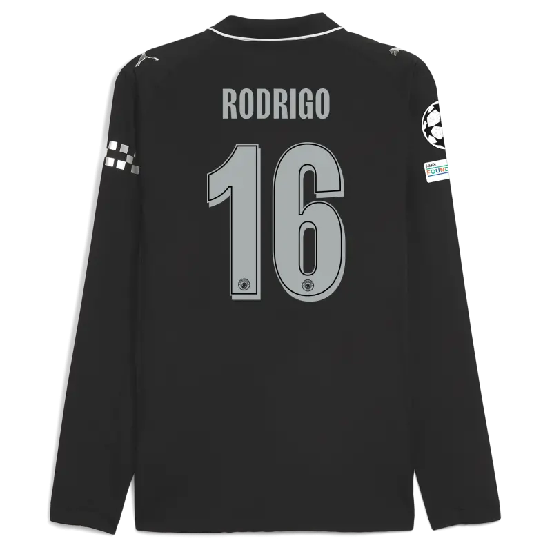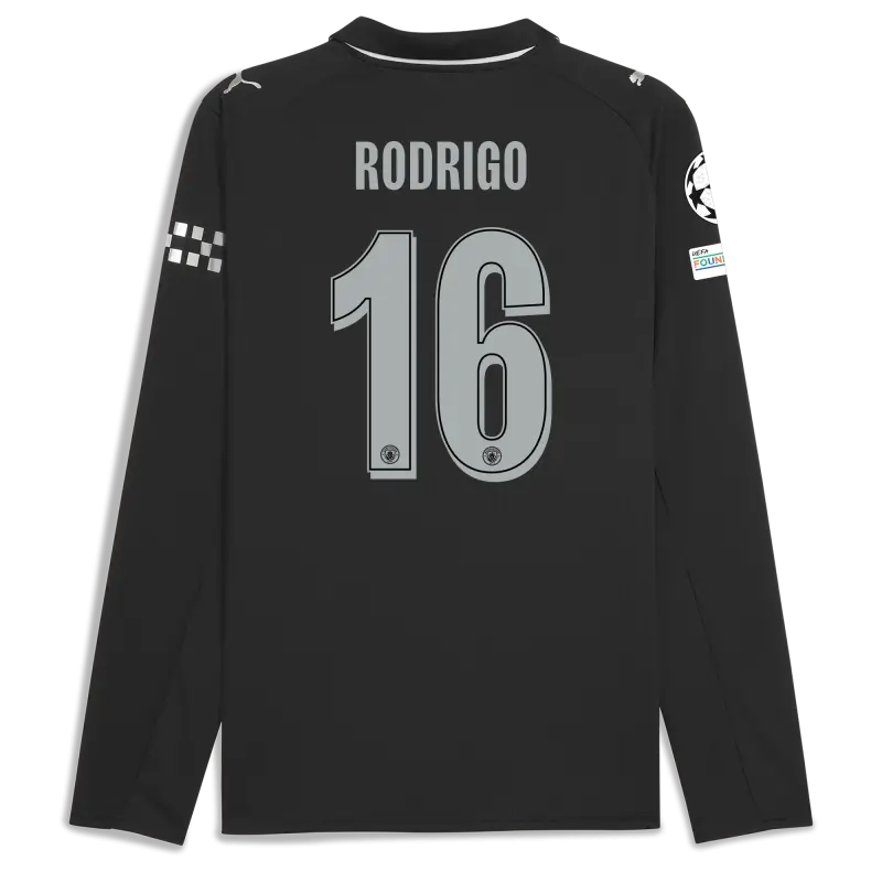 Manchester City Man City Champions League Away Jersey 2025/26 Long Sleeve With RODRIGO 16 Printing