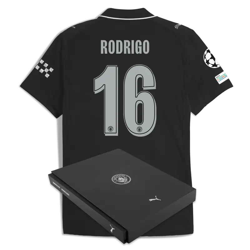 Manchester City Man City Champions League Away Authentic Jersey 2025/26 With RODRIGO 16 Printing in Gift Box