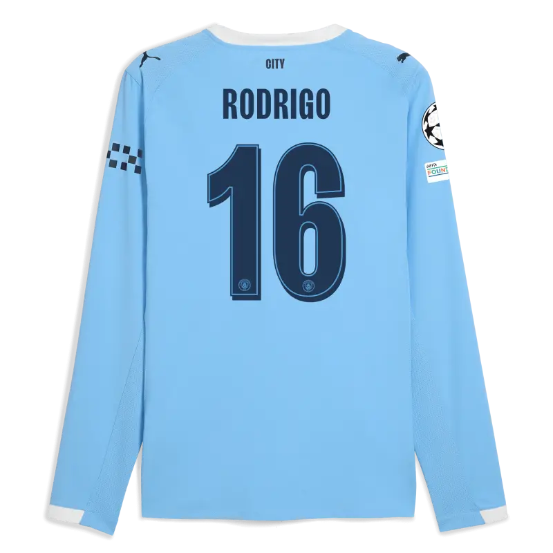 Manchester City Man City Champions League Home Authentic Jersey 2025/26 Long Sleeve With RODRIGO 16 Printing