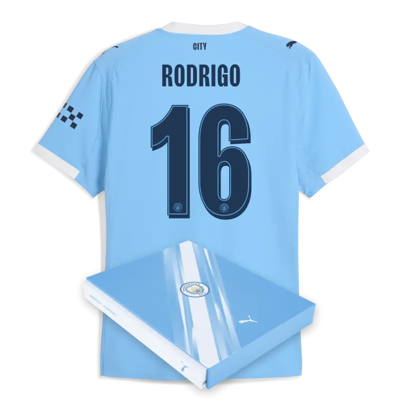 Manchester City Premier League Home Authentic Jersey 2025/26 With RODRIGO 16 Printing in Gift Box