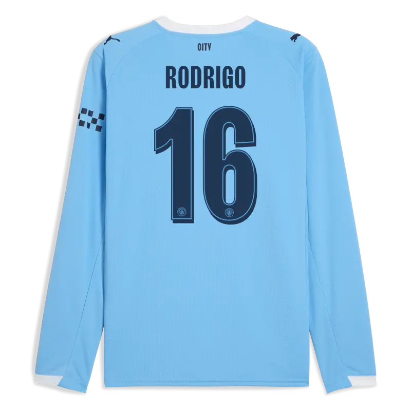 Manchester City Man City Home Jersey 2025/26 Long Sleeve With RODRIGO 16 Printing