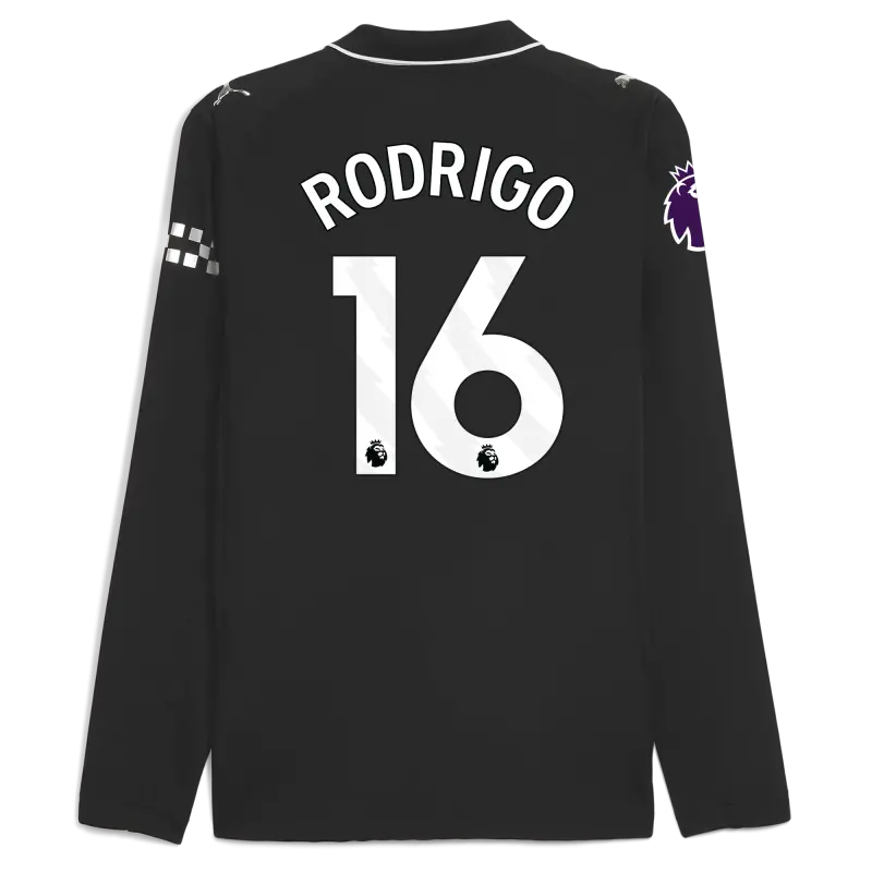 Manchester City Premier League Away Authentic Jersey 2025/26 Long Sleeve With RODRIGO 16 Printing