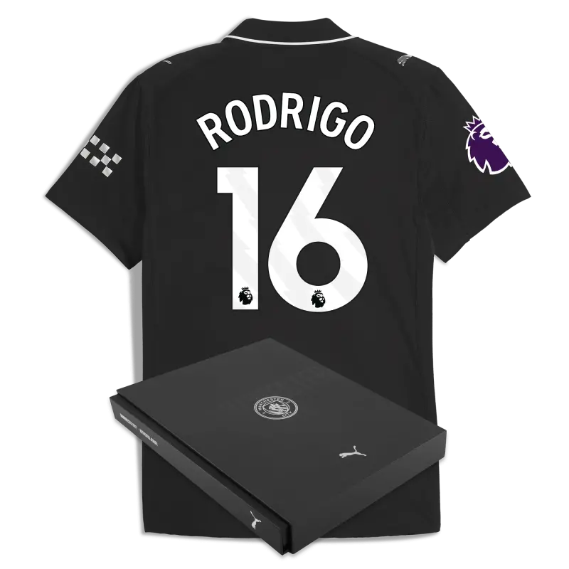Manchester City Premier League Away Authentic Jersey 2025/26 With RODRIGO 16 Printing in Gift Box