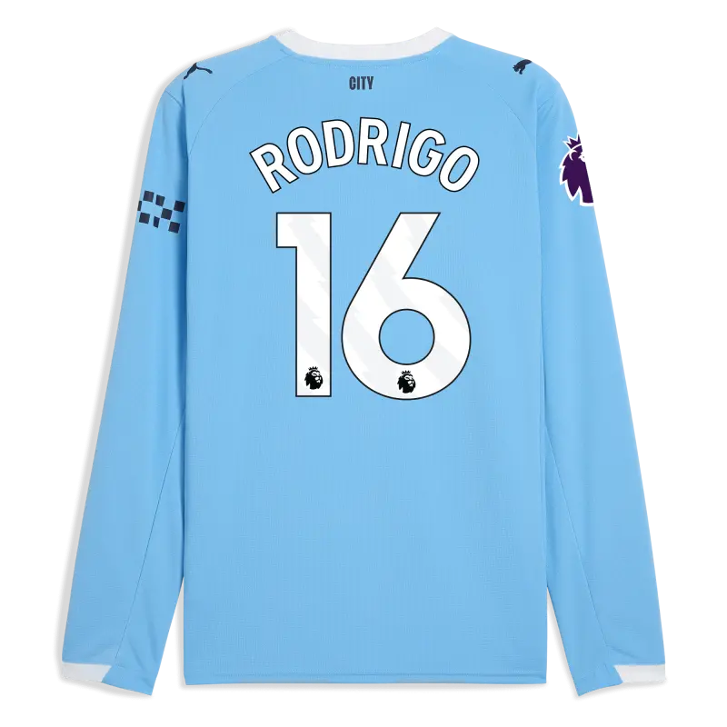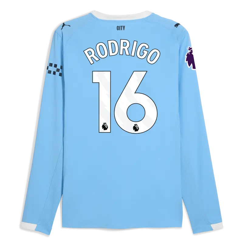 Manchester City Premier League Home Jersey 2025/26 Long Sleeve With RODRIGO 16 Printing