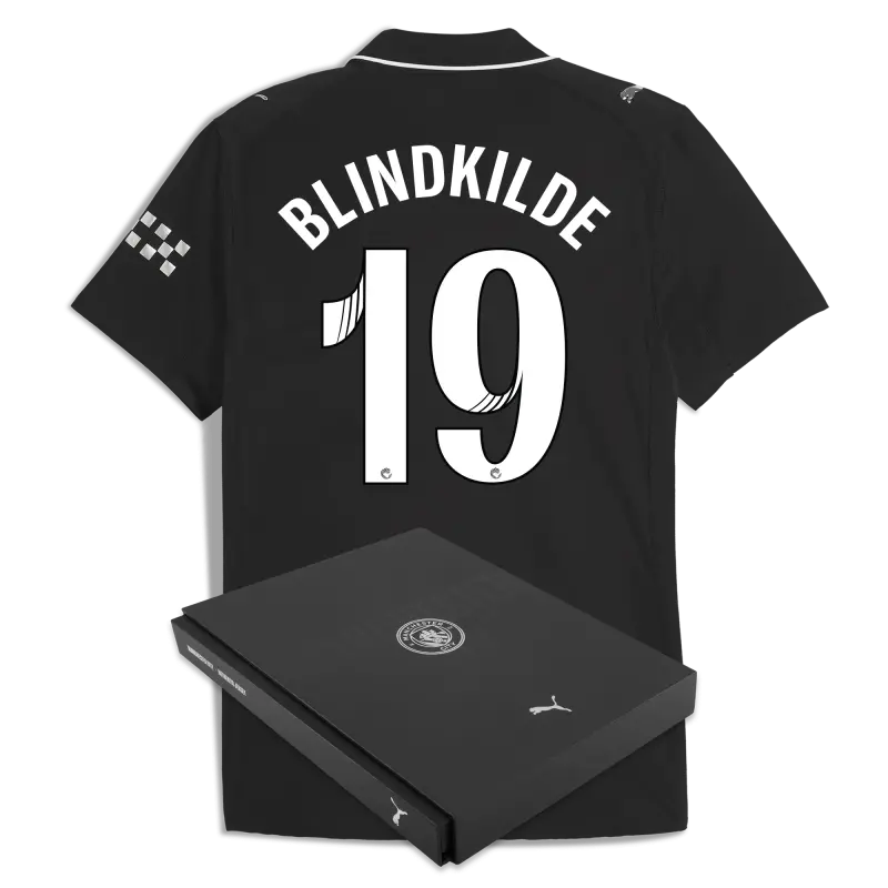 Manchester City Away Authentic Jersey 2025/26 With BLINDKILDE 19 Printing in Gift Box