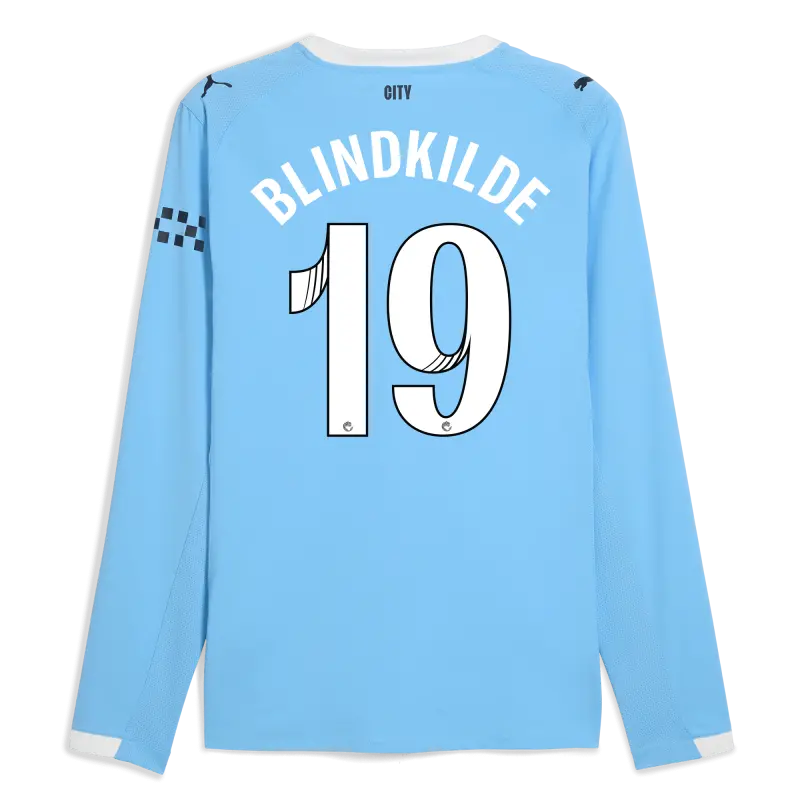 Manchester City Home Authentic Jersey 2025/26 Long Sleeve With BLINDKILDE 19 Printing