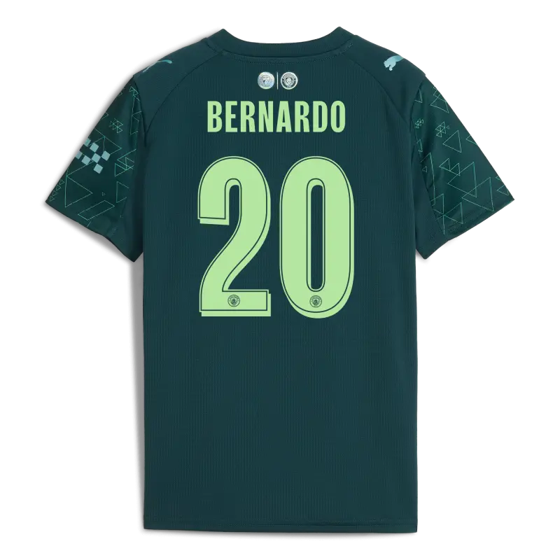 Kids’ Manchester City Away Jersey 2025/26 With BERNARDO 20 Printing