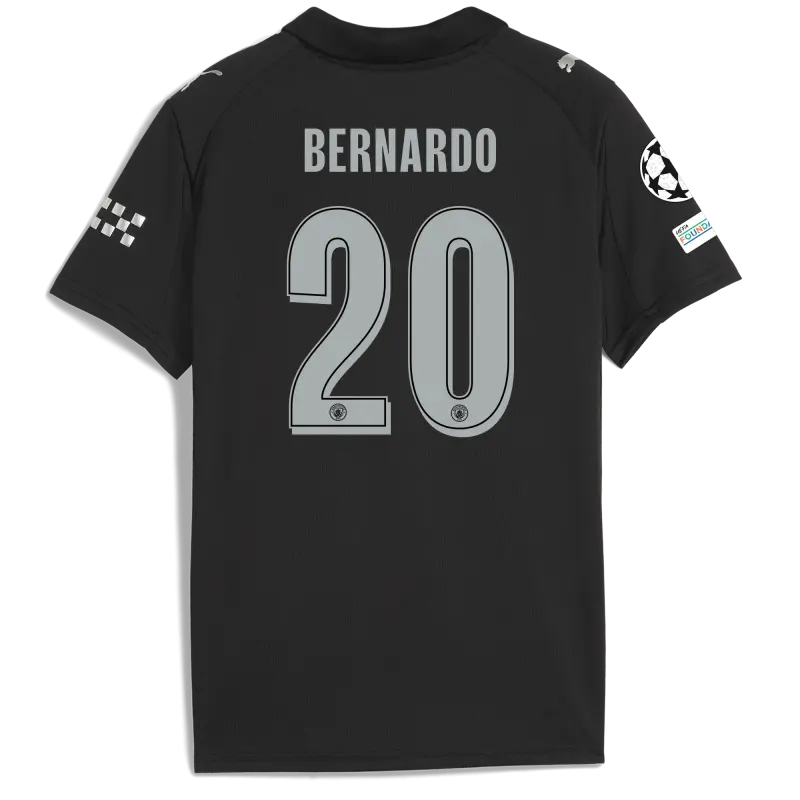 Kids’ Manchester City Man City Champions League Away Jersey 2025/26 With BERNARDO 20 Printing