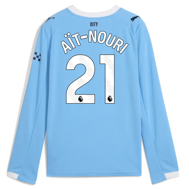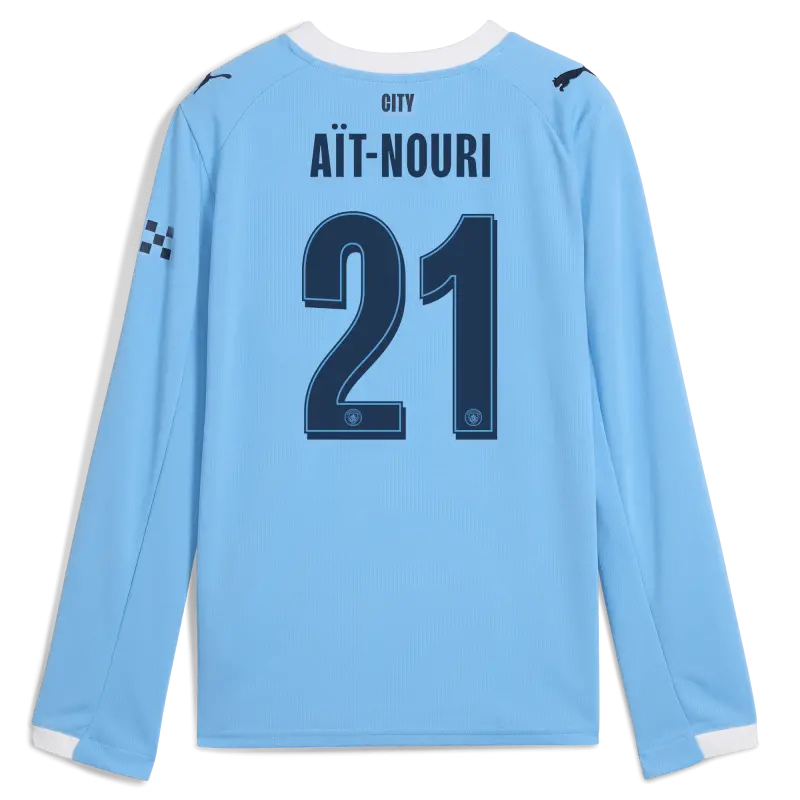 Kids’ Manchester City Home Jersey 2025/26 Long Sleeve With AÏT-NOURI 21 Printing