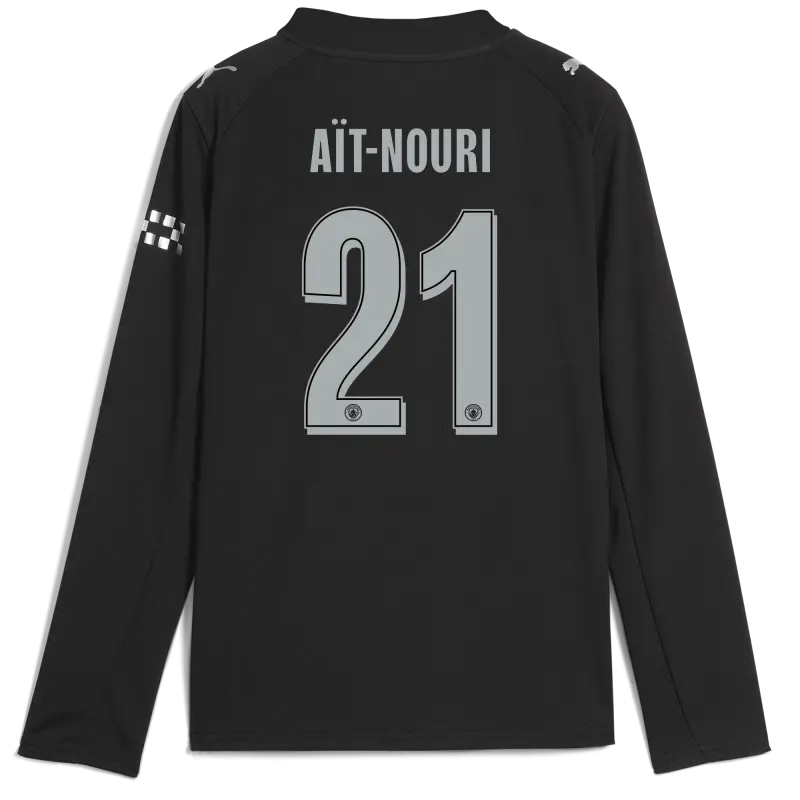 Kids’ Manchester City Man City Away Jersey 2025/26 Long Sleeve With AÏT-NOURI 21 Printing