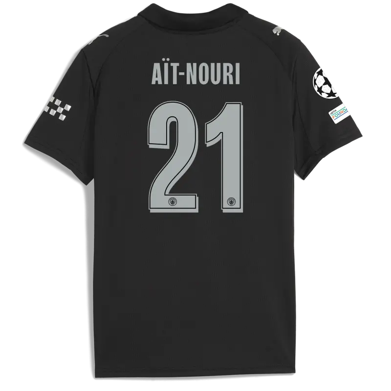 Kids’ Manchester City Man City Champions League Away Jersey 2025/26 With AÏT-NOURI 21 Printing